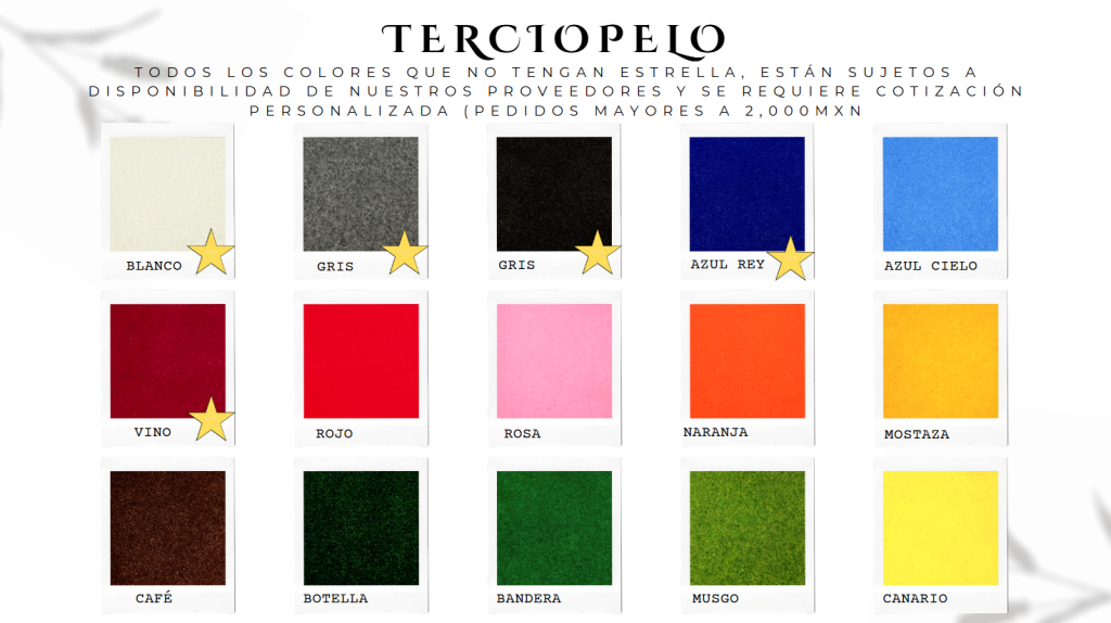 El terciopelo que utilizamos es un papel de la más alta calidad, elaborado con fibras de lana adheridas que le confieren una suavidad y tacto inigualables.